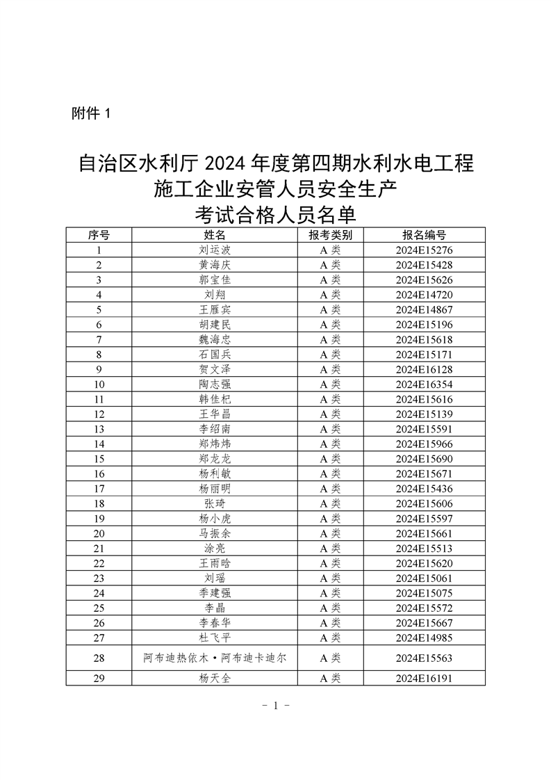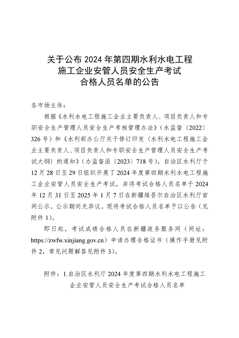 关于公布2024年第四期水利水电工程施工企业安管人员安全生产考试合格人员名单的公告