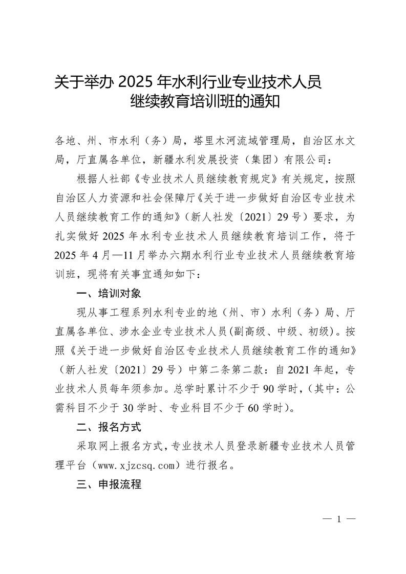 关于举办2025年水利行业专业技术人员继续教育培训班的通知